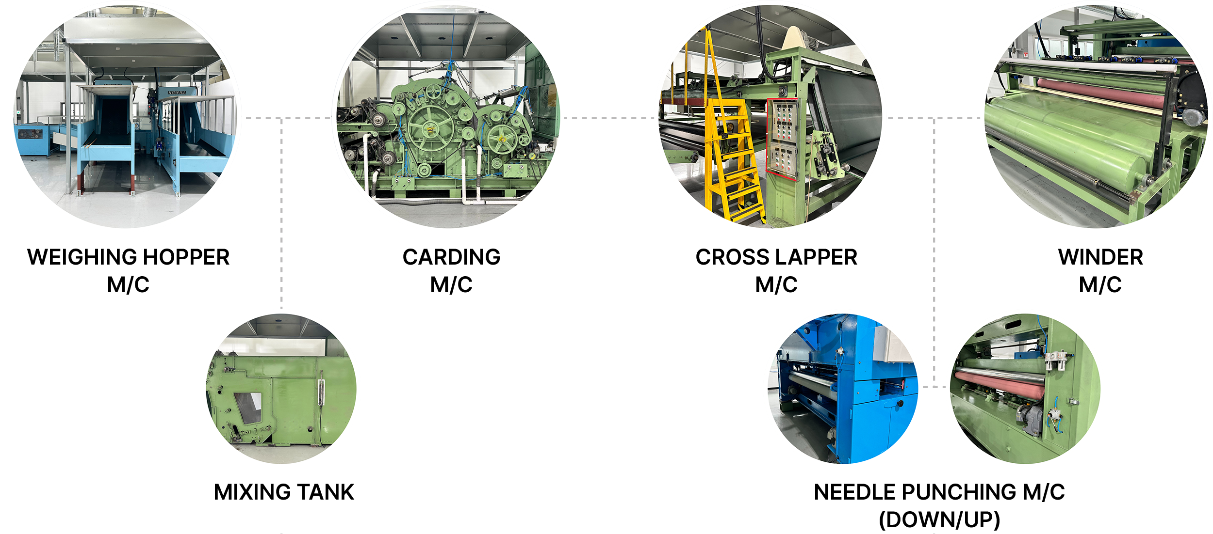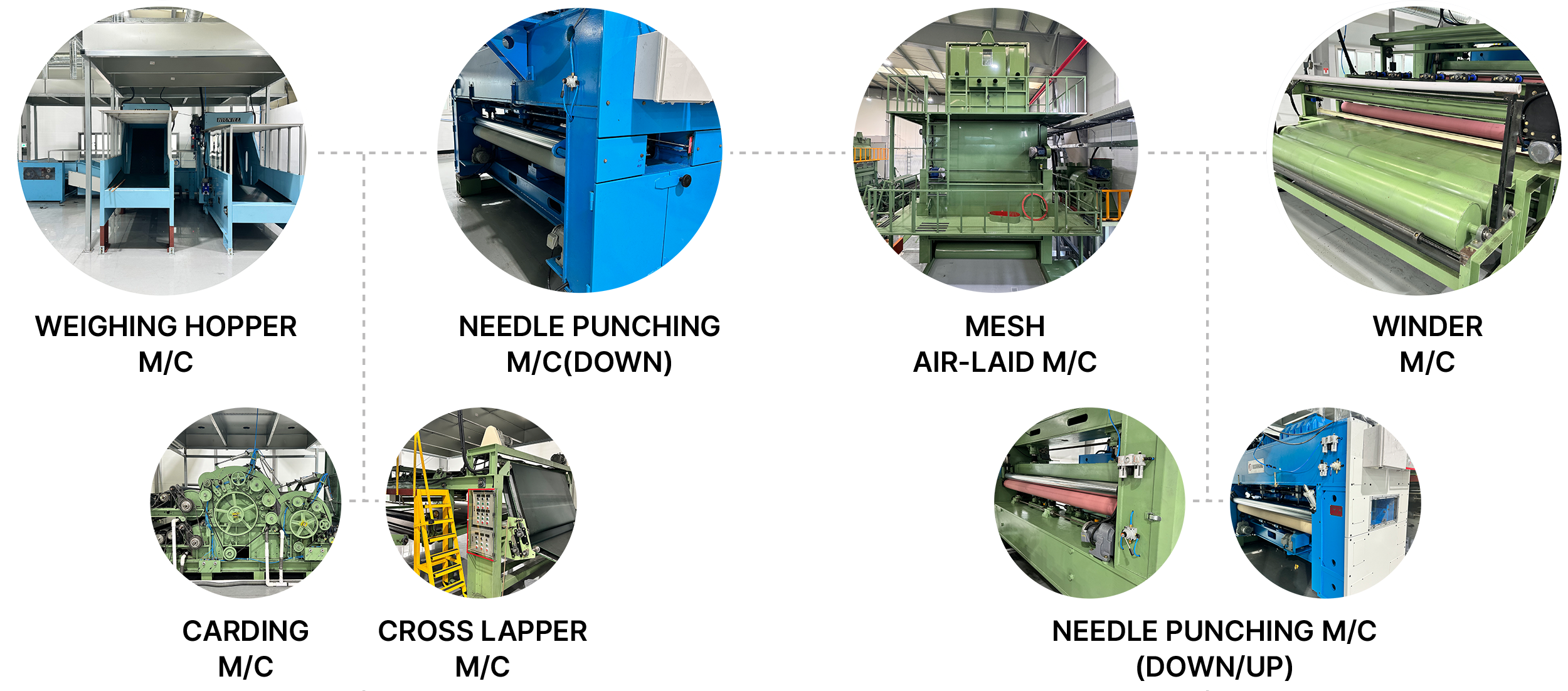 제조 과정 Type_ASDAC는 혼방 비율에 따라 Carding, Lapping, Needle Punching 조건을 개발하여